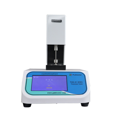 測厚儀采用接觸式測試原理,截取一定尺寸試樣,測厚儀測量頭自動降落于試樣之上,依靠固定的壓力和固定的接觸面積下測試出試樣的厚度值。